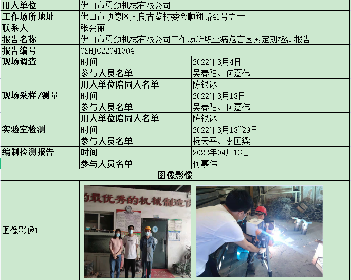 佛山市勇劲机械有限公司定期检测报告