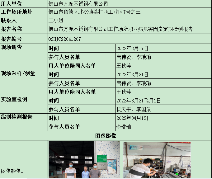 佛山市万庞不锈钢有限公司定期检测报告