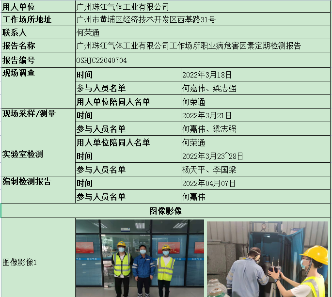 广州珠江气体工业有限公司定期检测报告