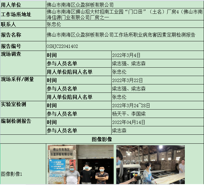 佛山市南海区众盈拼板有限公司定期检测报告