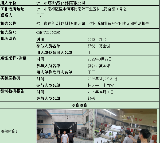 佛山市速科装饰材料有限公司定期检测