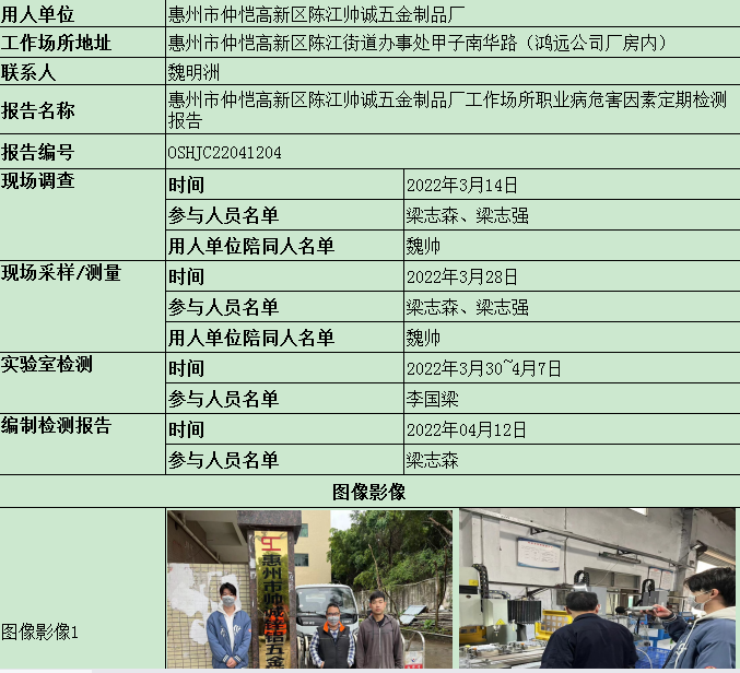 惠州市仲恺高新区陈江帅诚五金制品厂定期检测
