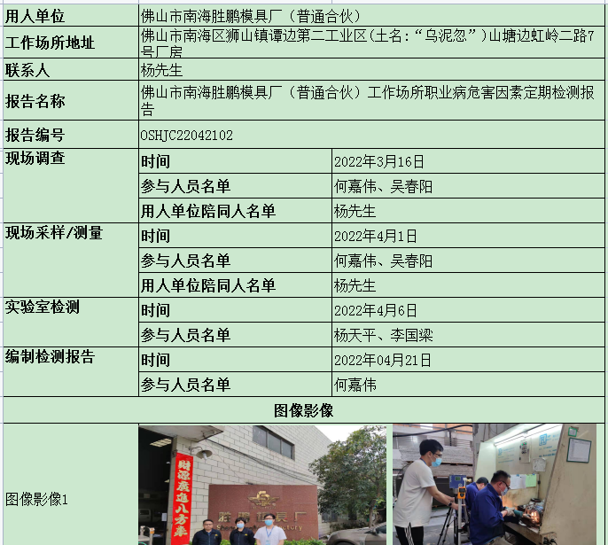 佛山市南海胜鹏模具厂(普通合伙)定期检测
