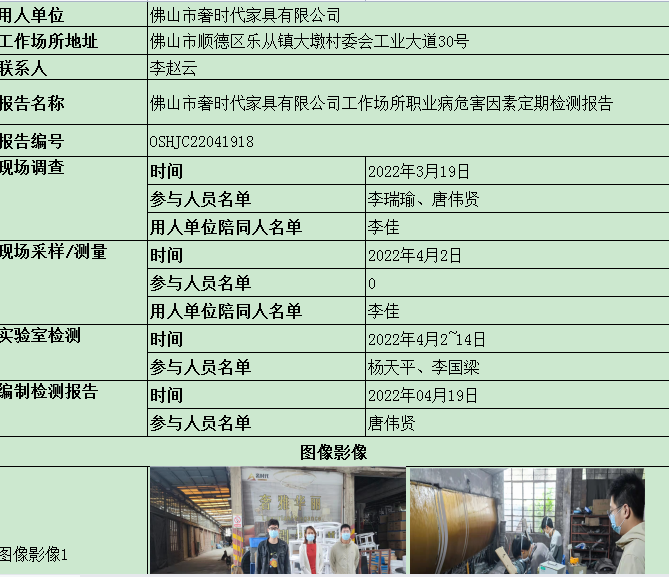 佛山市奢时代家具有限公司定期检测