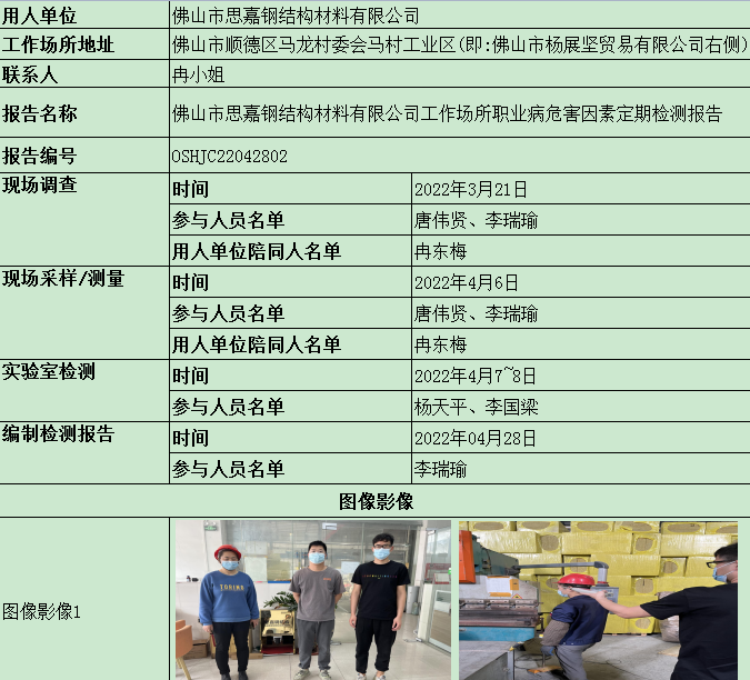 佛山市思嘉钢结构材料有限公司定期检测