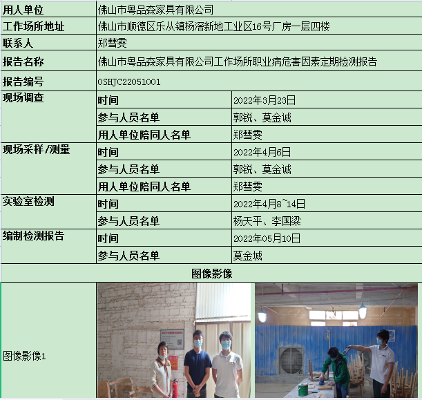 佛山市粤品森家具有限公司定期检测