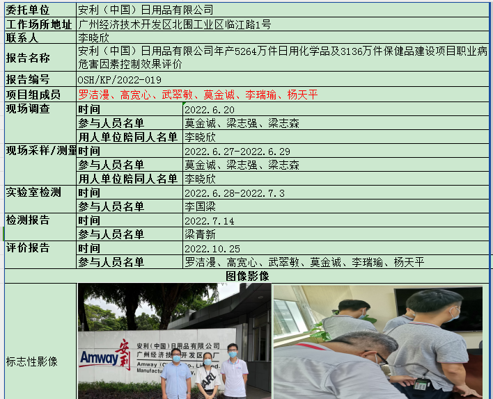安利(中国)日用品有限公司年产5264万件日用化学品及3136万件保健品建设项目职业病危害因素控制效果评价