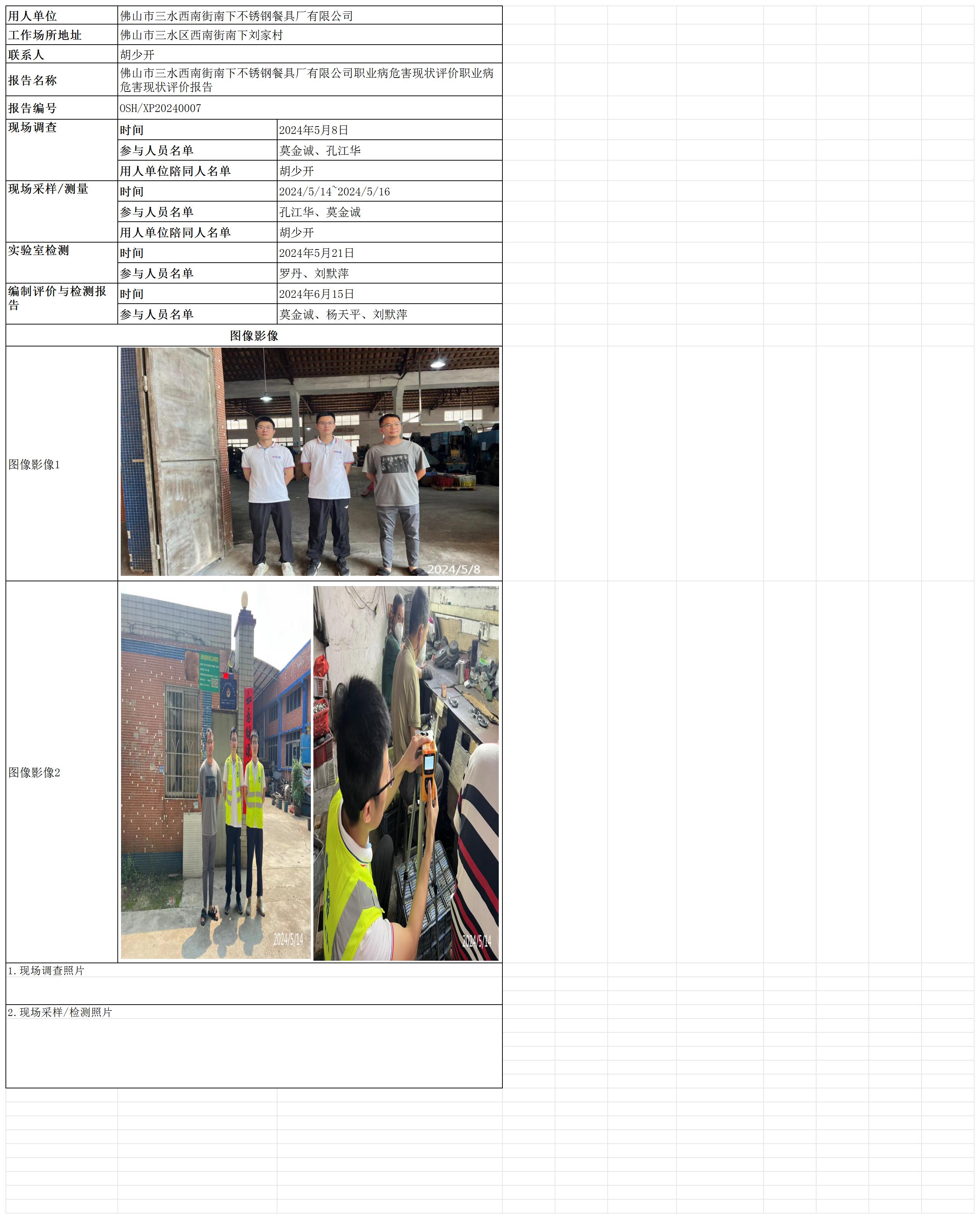 佛山市三水西南街南下不锈钢餐具厂有限公司职业病危害现状评价