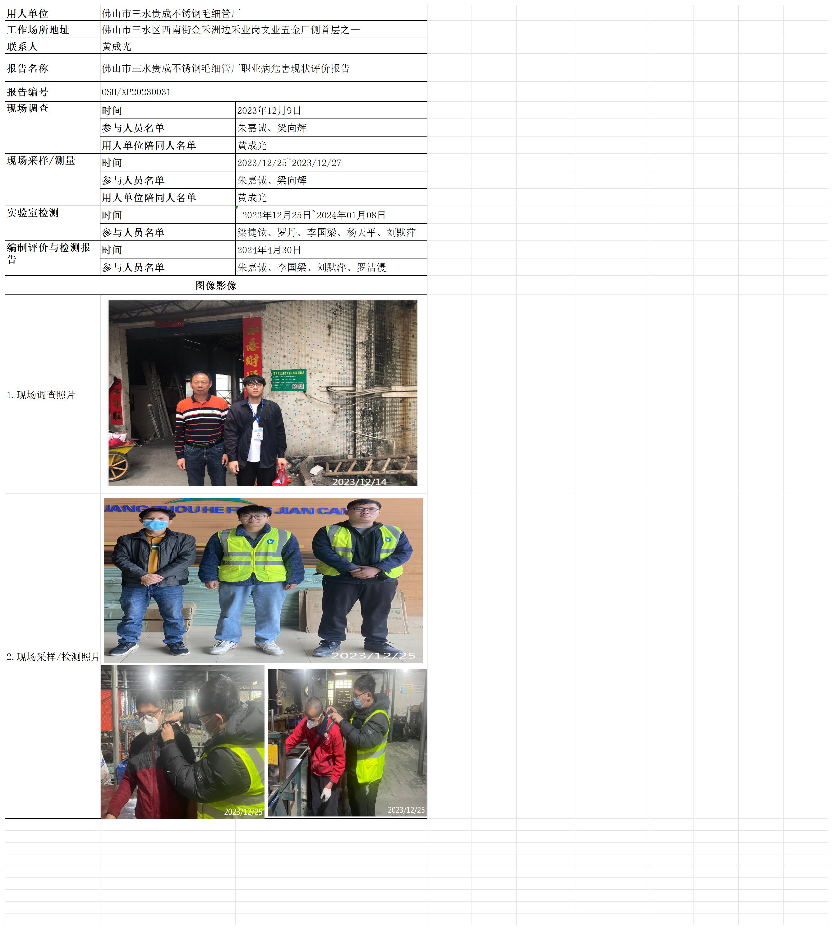 佛山市三水贵成不锈钢毛细管厂职业病危害现状评价