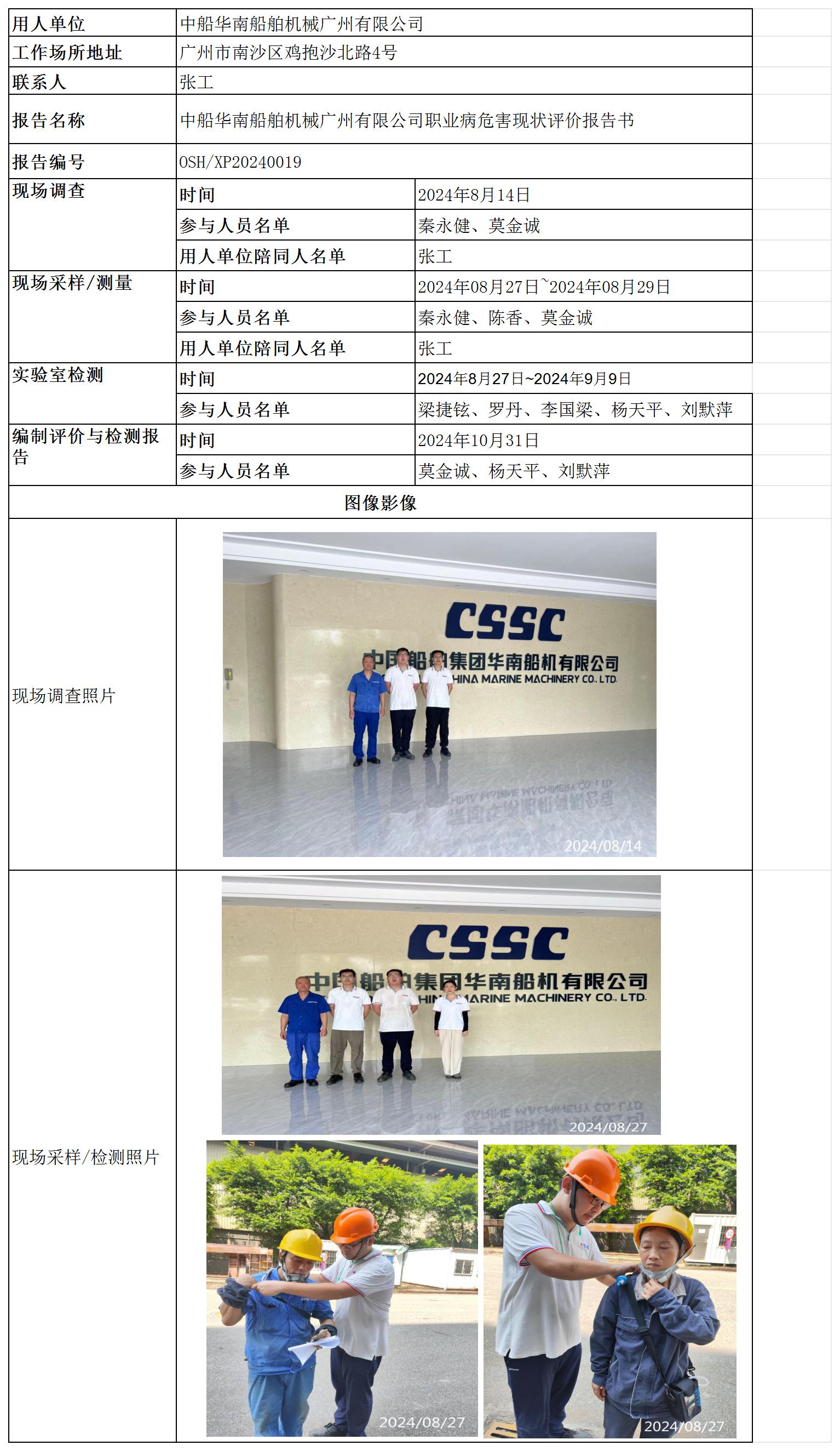 中船华南船舶机械广州有限公司职业病危害现状评价报告书