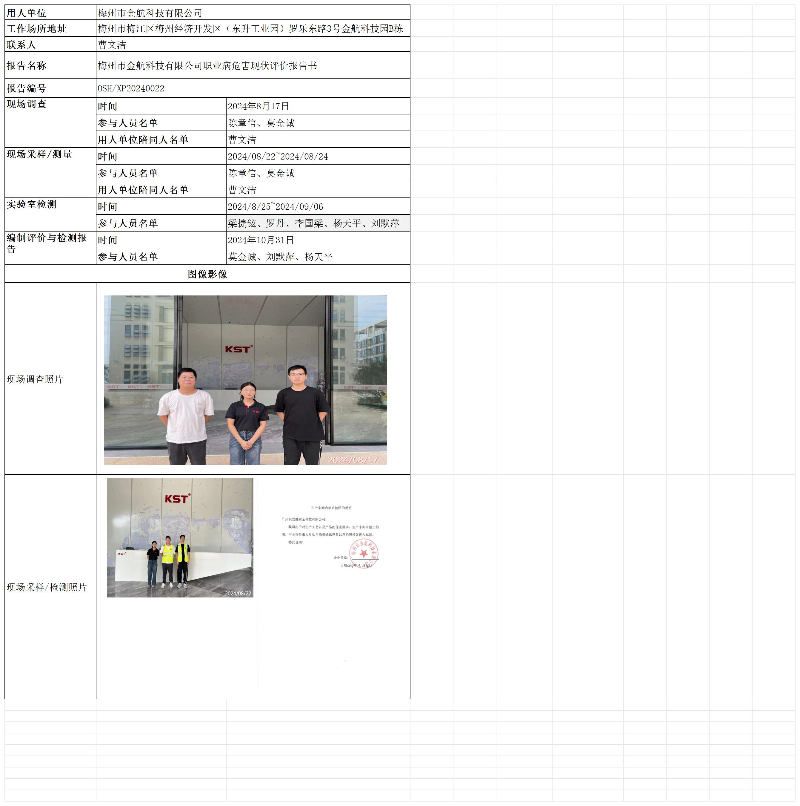梅州市金航科技有限公司职业病危害现状评价报告书