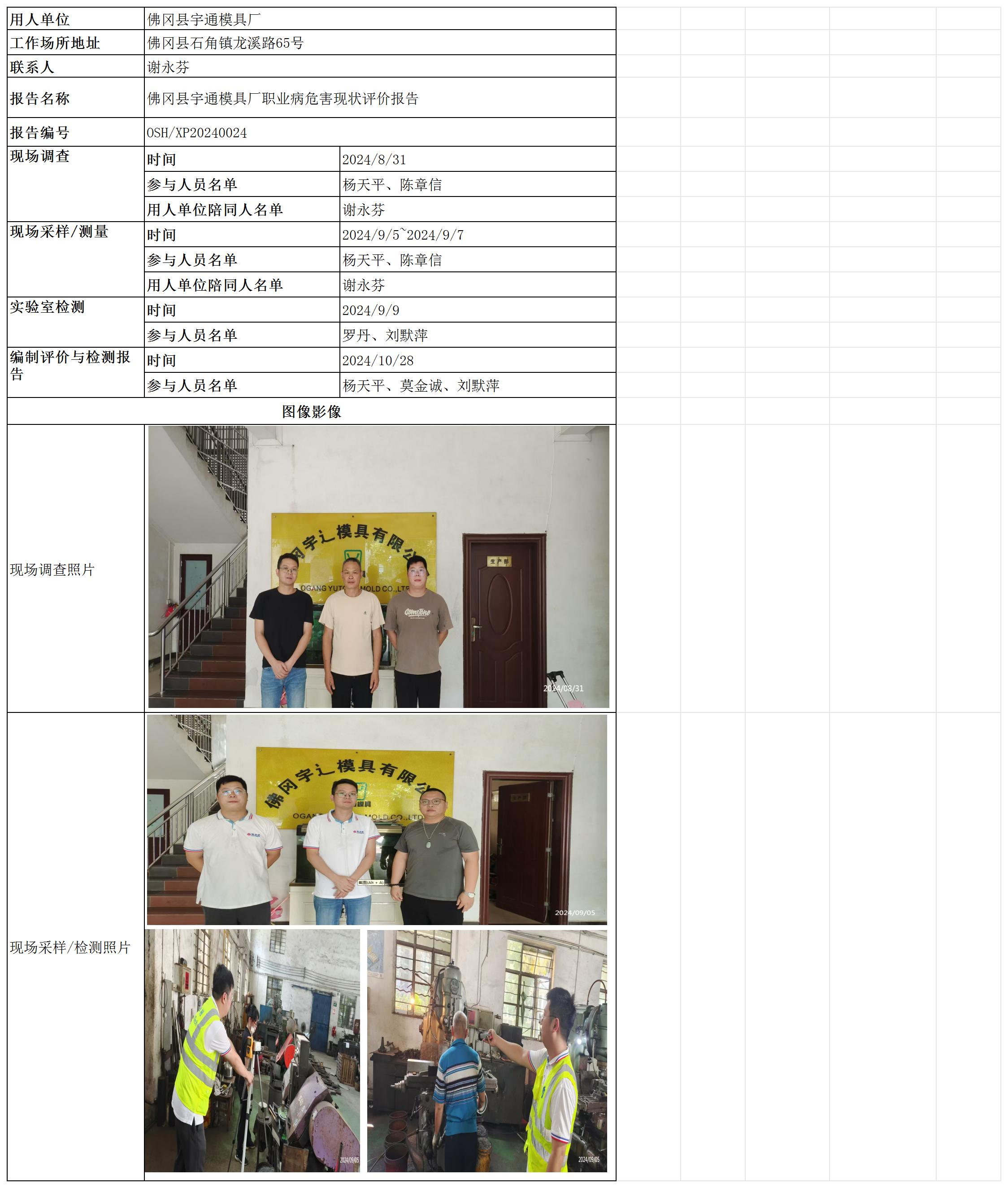 佛冈县宇通模具厂 职业病危害现状评价报告书