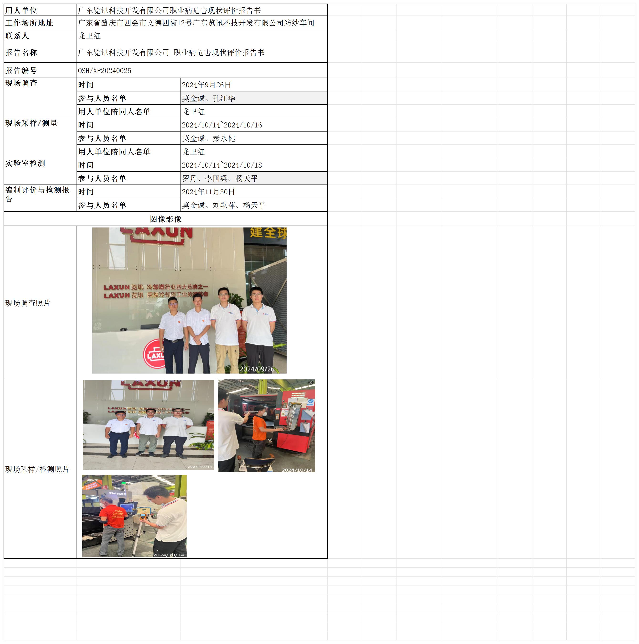 广东览讯科技开发有限公司职业病危害现状评价报告书