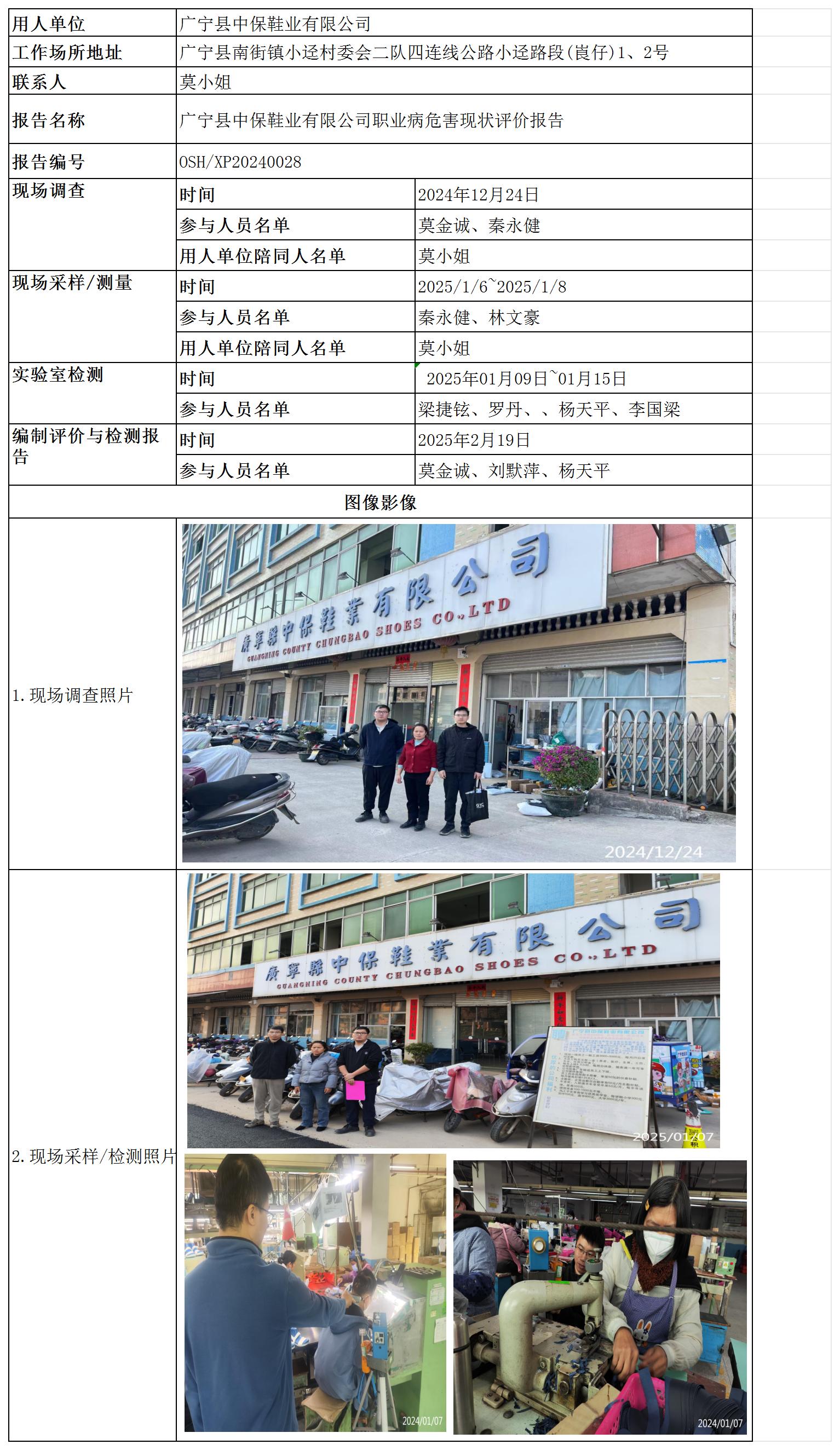 广宁县中保鞋业有限公司职业病危害现状评价报告