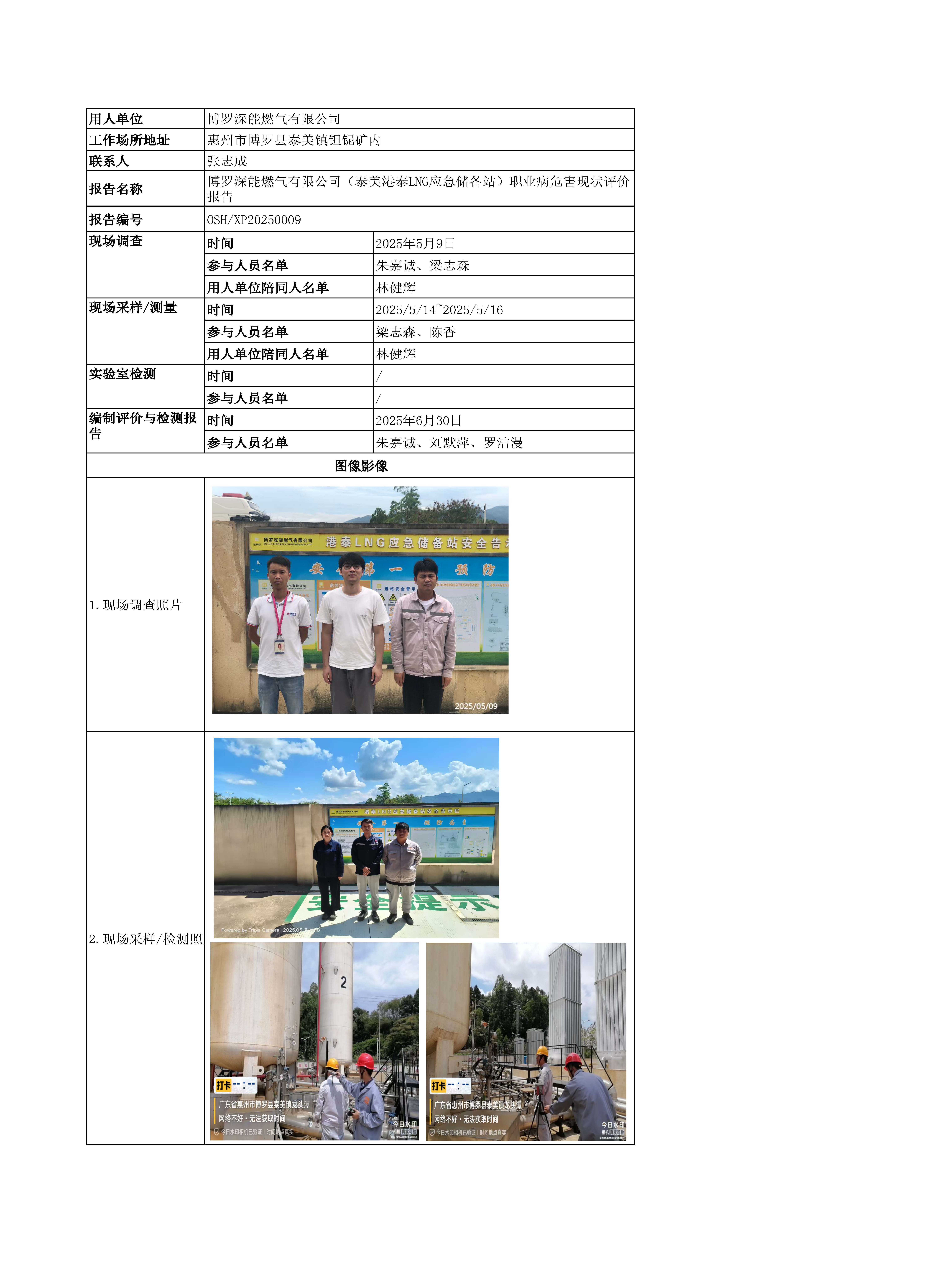 博罗深能燃气有限公司(泰美港泰LNG应急储备站)职业病危害现状评价