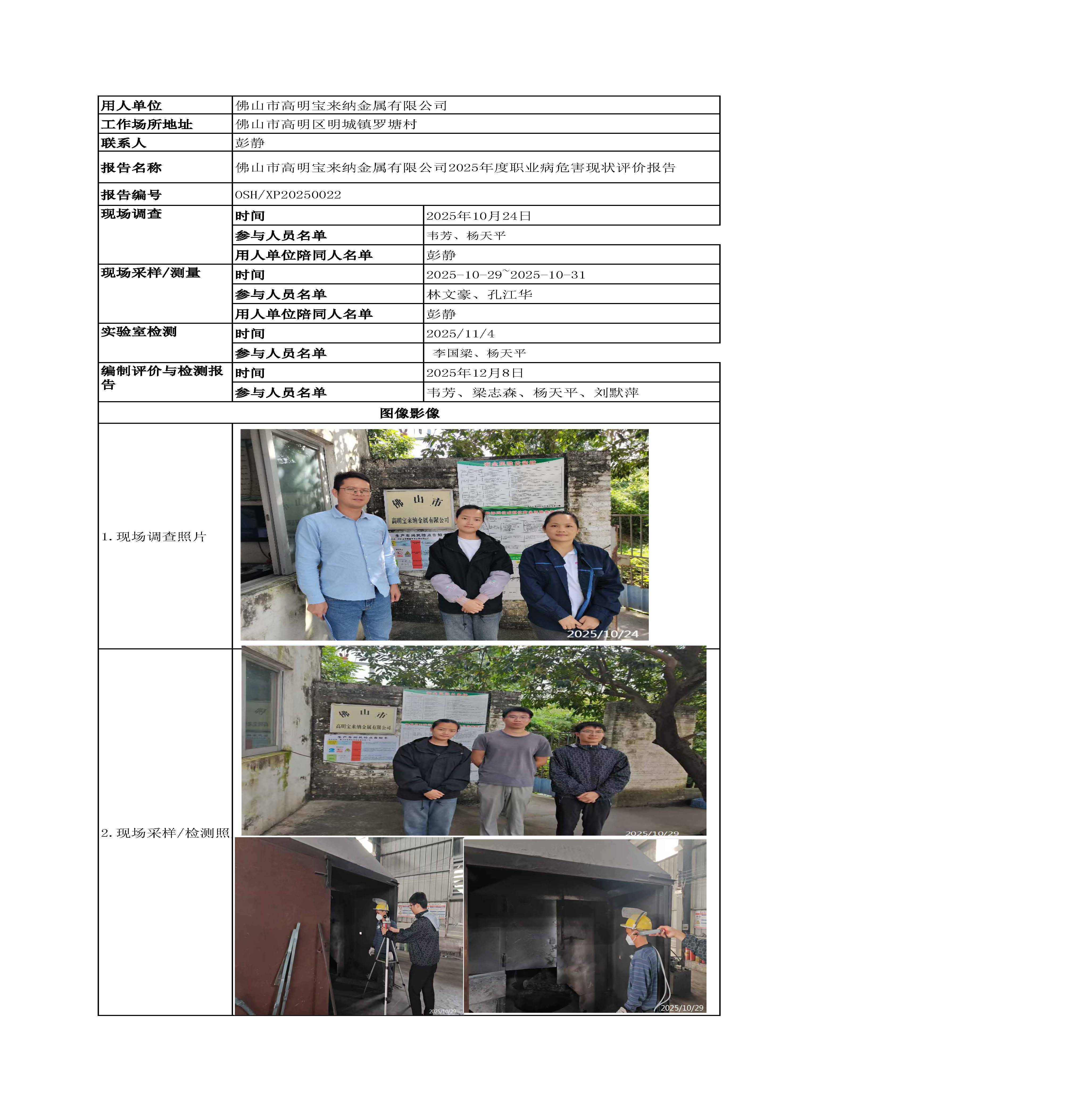 佛山市高明宝来纳金属有限公司2025年度职业病危害现状评价报告