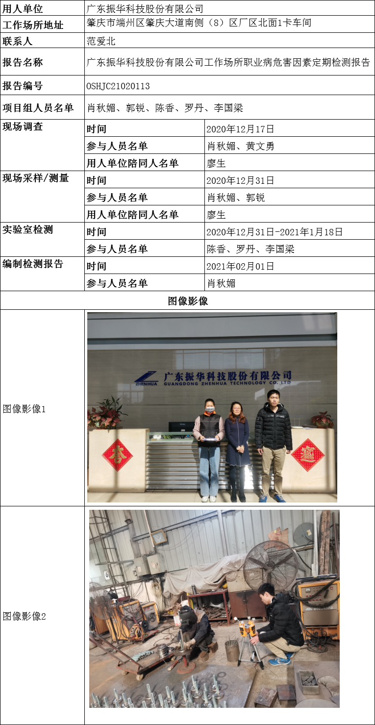 广东振华科技股份有限公司工作场所职业病危害因素定期检测