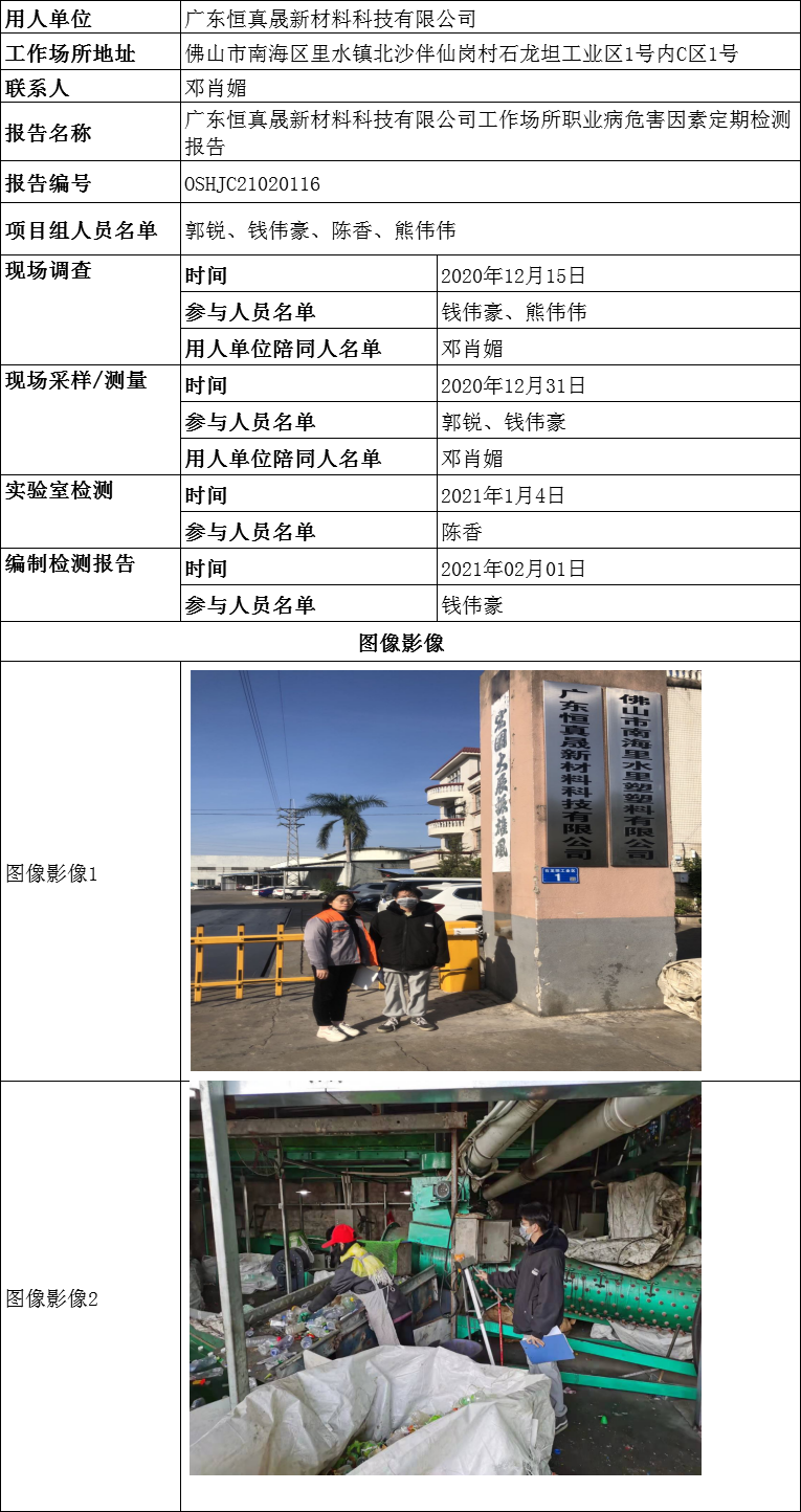 广东恒真晟新材料科技有限公司工作场所职业病危害因素定期检测