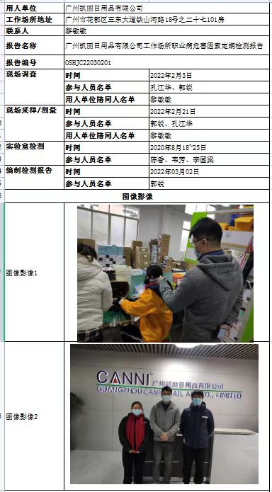广州凯丽日用品有限公司工作场所职业病危害因素定期检测报告