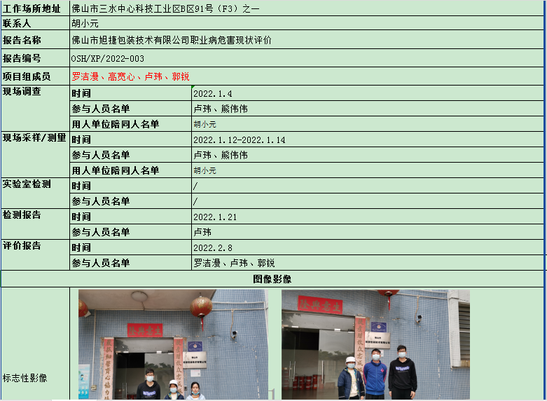 佛山市旭捷包装技术有限公司职业病危害现状评价