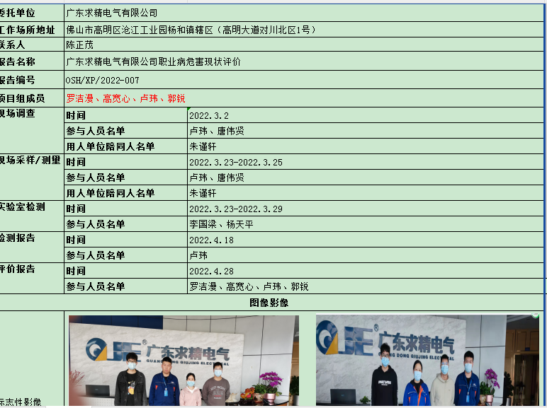 广东求精电气有限公司职业病危害现状评价