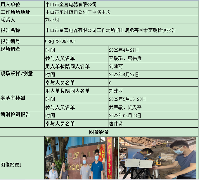 职业卫生检测报告