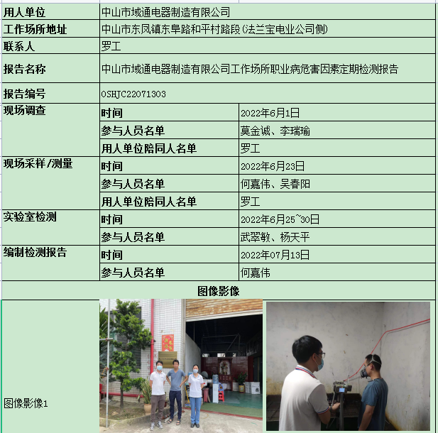 职业卫生检测报告