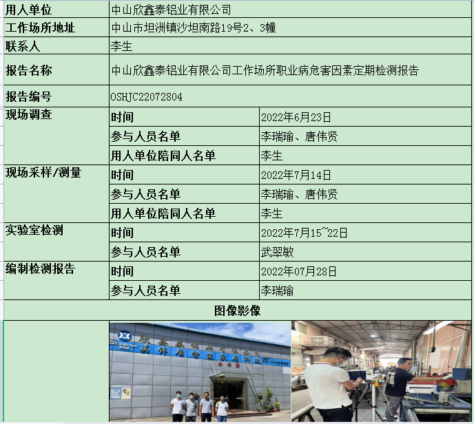 职业卫生检测报告