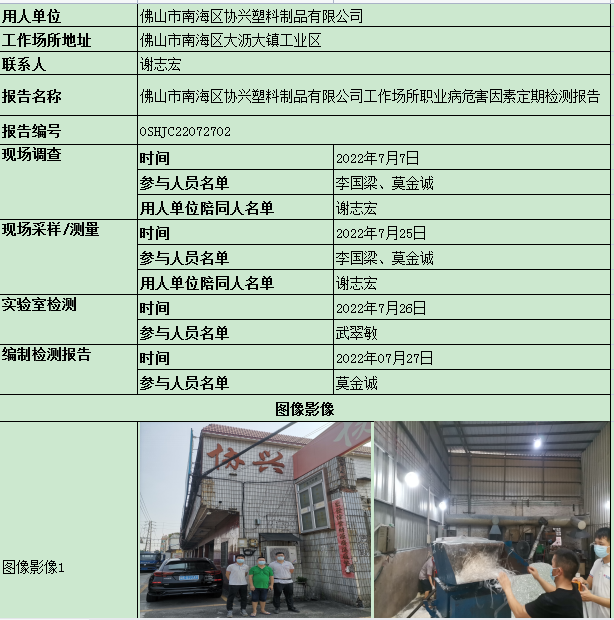 职业卫生检测报告