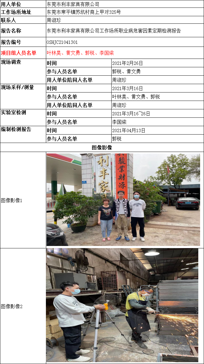 东莞市利丰家具有限公司工作场所职业病危害因素定期检测报告