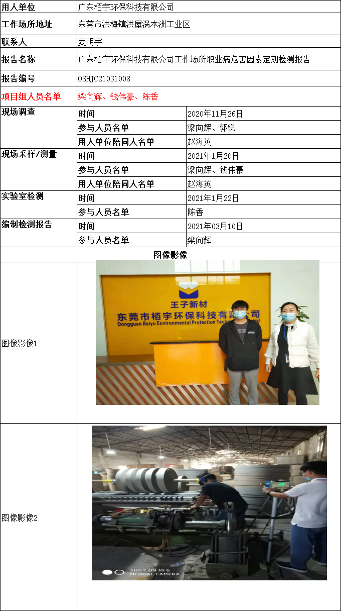 广东栢宇环保科技有限公司工作场所职业病危害因素定期检测报告