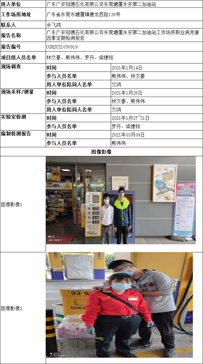 广东广安冠德石化有限公司东莞塘厦永安第二加油站工作场所职业病危害因素定期检测报告