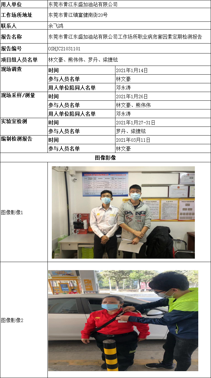 东莞市黄江东盛加油站有限公司工作场所职业病危害因素定期检测报告