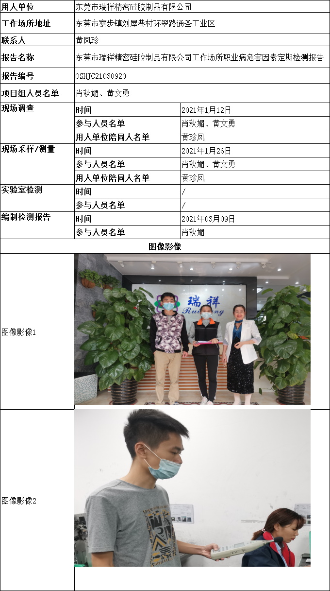 东莞市瑞祥精密硅胶制品有限公司工作场所职业病危害因素定期检测报告