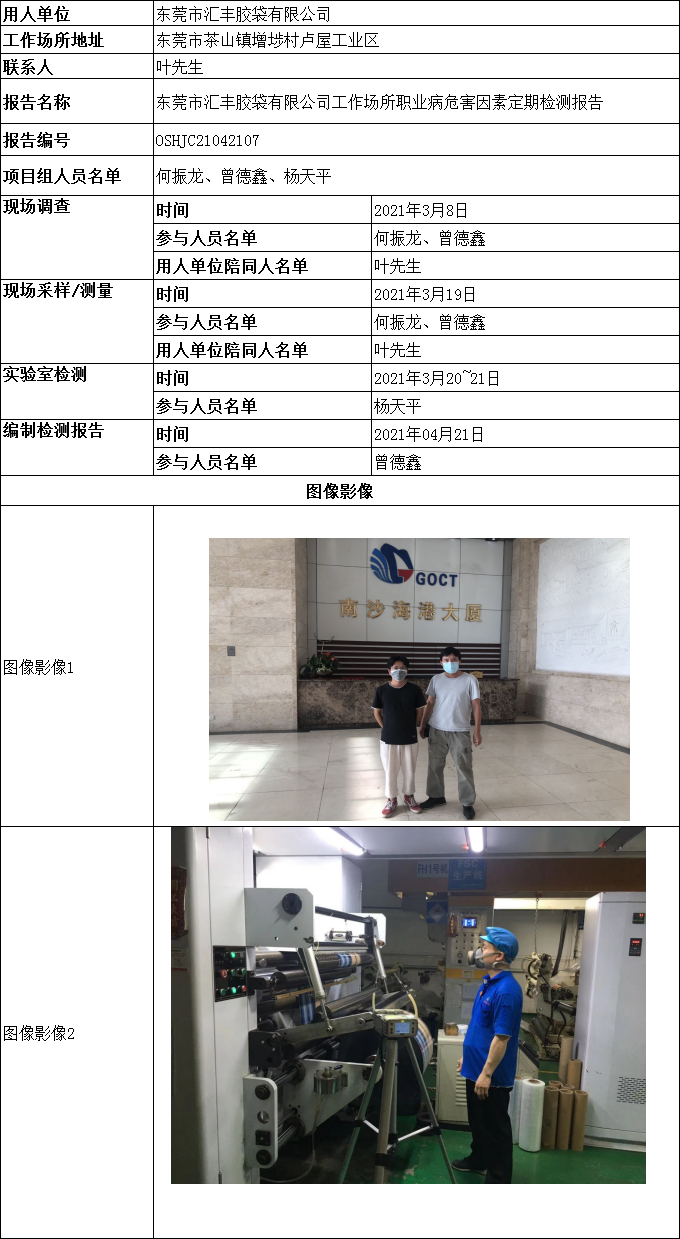 东莞市汇丰胶袋有限公司工作场所职业病危害因素定期检测报告