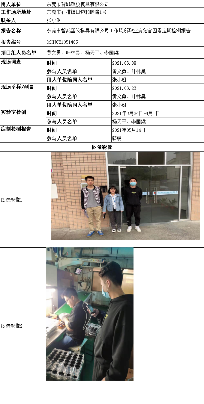 东莞市智鸿塑胶模具有限公司工作场所职业病危害因素定期检测报告