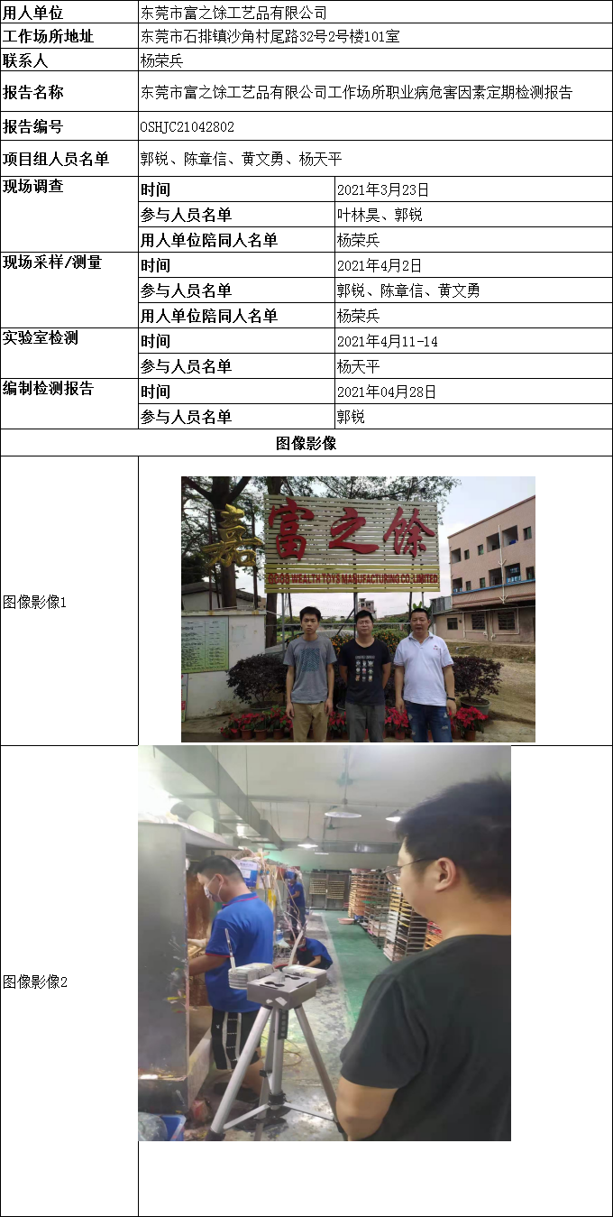 东莞市富之馀工艺品有限公司工作场所职业病危害因素定期检测报告