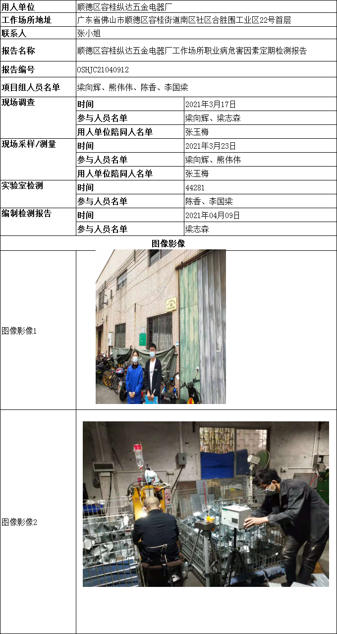顺德区容桂纵达五金电器厂工作场所职业病危害因素定期检测报告