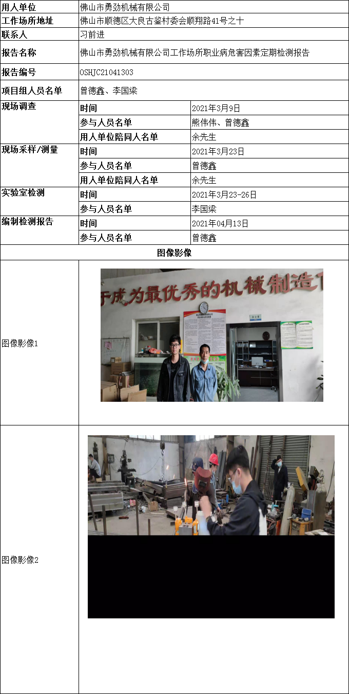 佛山市勇劲机械有限公司工作场所职业病危害因素定期检测报告