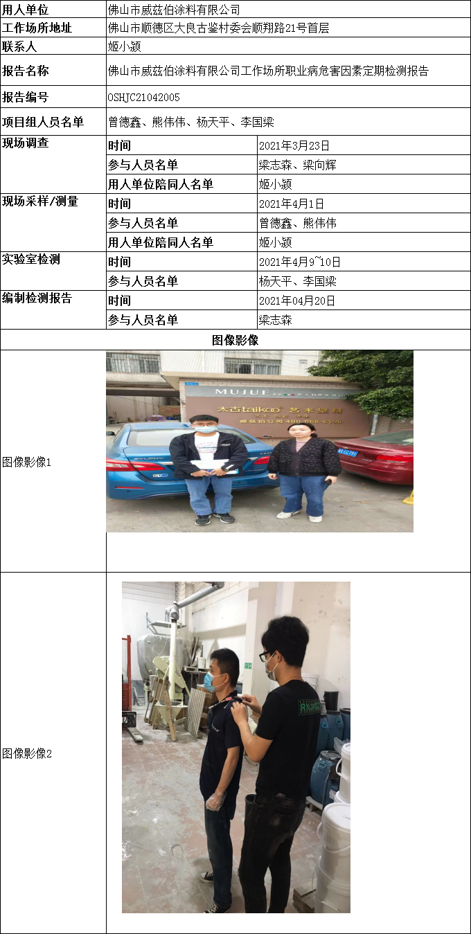 佛山市威兹伯涂料有限公司工作场所职业病危害因素定期检测报告