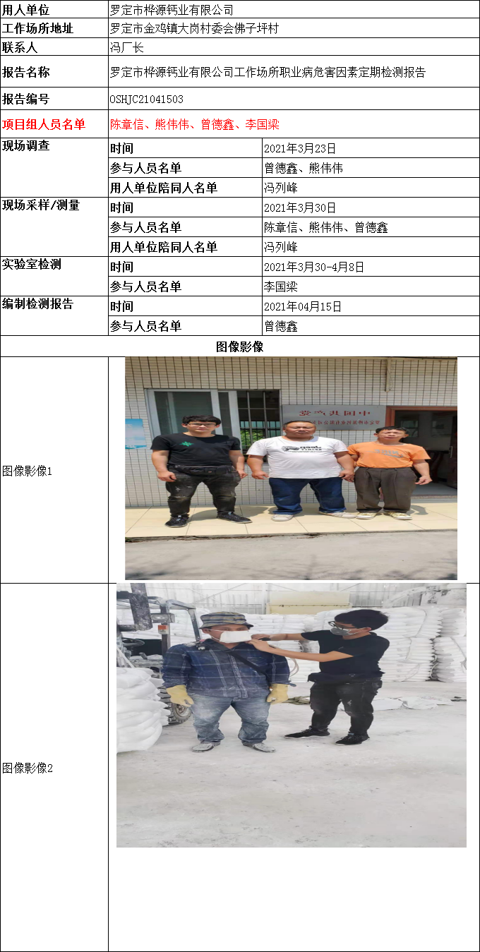 罗定市桦源钙业有限公司工作场所职业病危害因素定期检测报告
