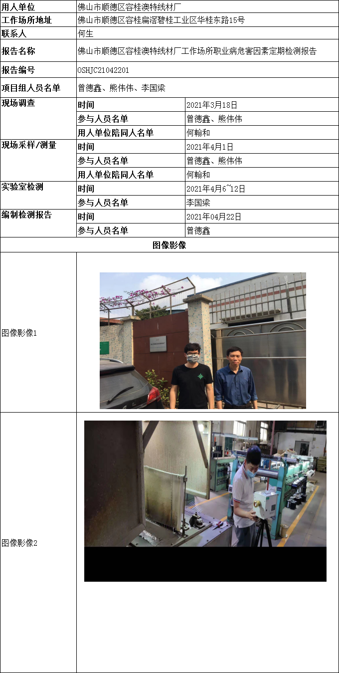 佛山市顺德区容桂澳特线材厂工作场所职业病危害因素定期检测报告