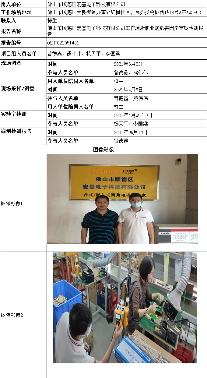 佛山市顺德区宏基电子科技有限公司工作场所职业病危害因素定期检测报告