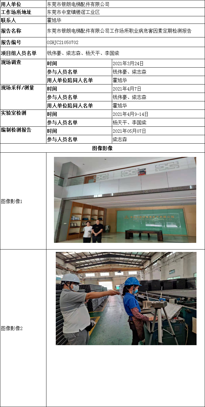 东莞市银朗电梯配件有限公司工作场所职业病危害因素定期检测报告
