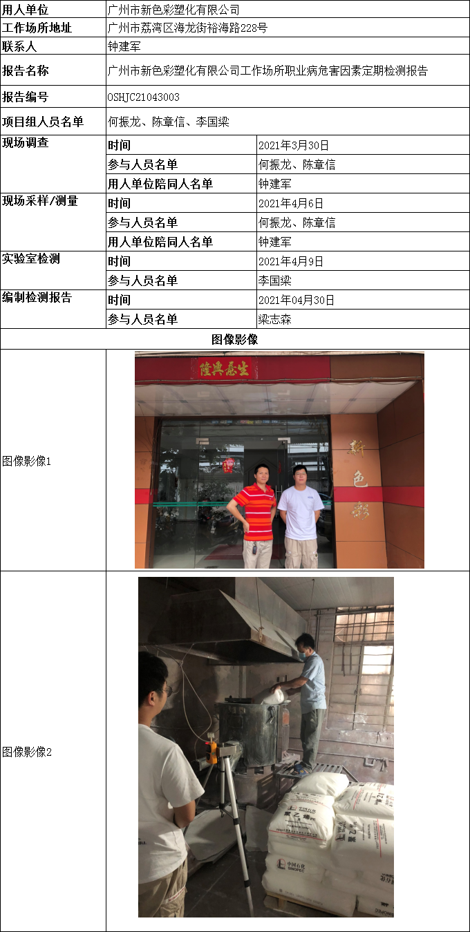 广州市新色彩塑化有限公司工作场所职业病危害因素定期检测报告