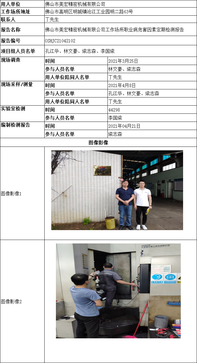 佛山市美宏精密机械有限公司工作场所职业病危害因素定期检测报告