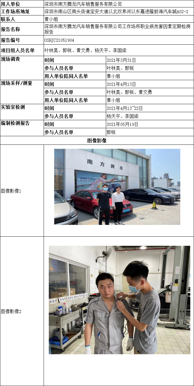 深圳市南方腾龙汽车销售服务有限公司工作场所职业病危害因素定期检测报告