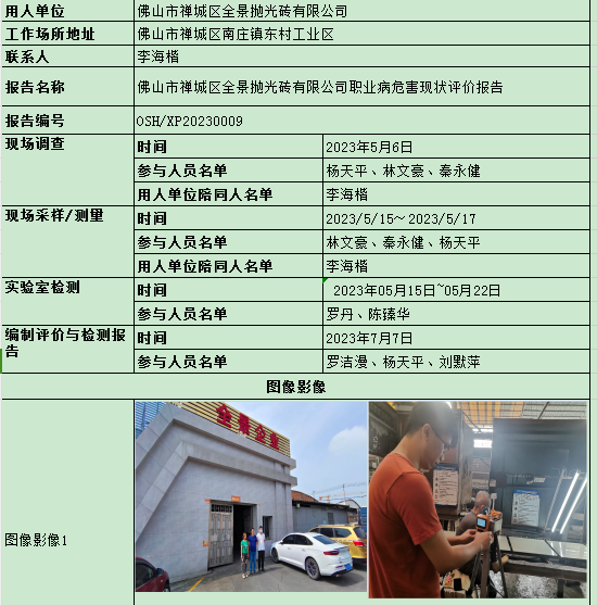 佛山市禅城区全景抛光砖有限公司职业病危害现状评价