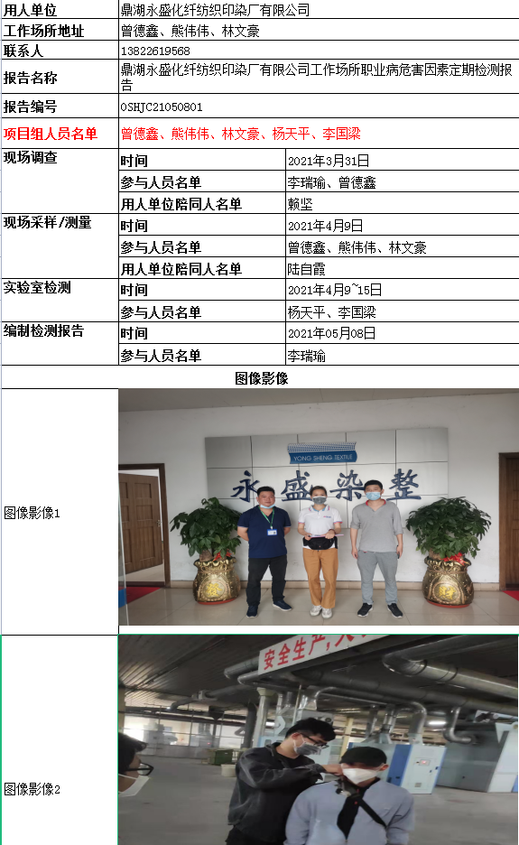 鼎湖永盛化纤纺织印染厂有限公司工作场所职业病危害因素定期检测报告