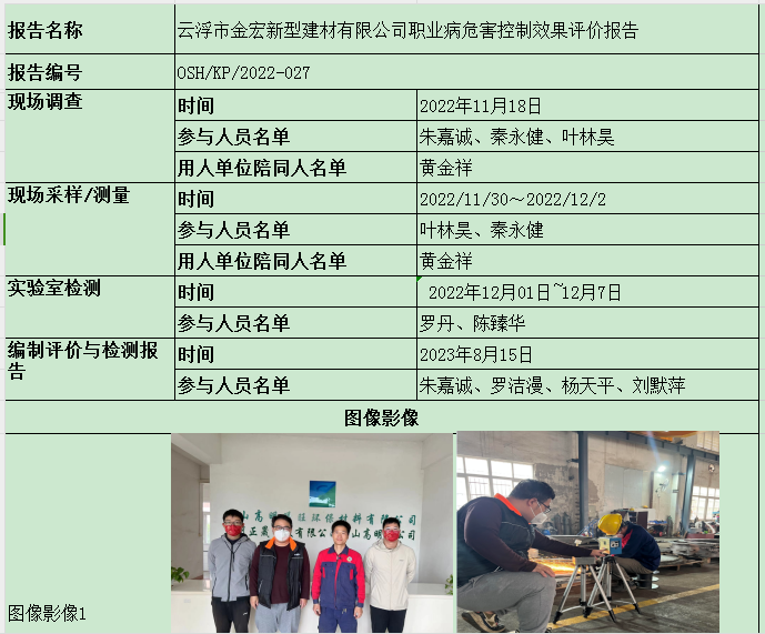 云浮市金宏新型建材有限公司职业病危害控制效果评价报告